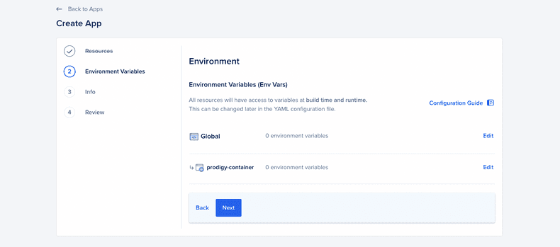 Later in the form, you’ll be able to enter environment variables from the digital ocean user interface as well.